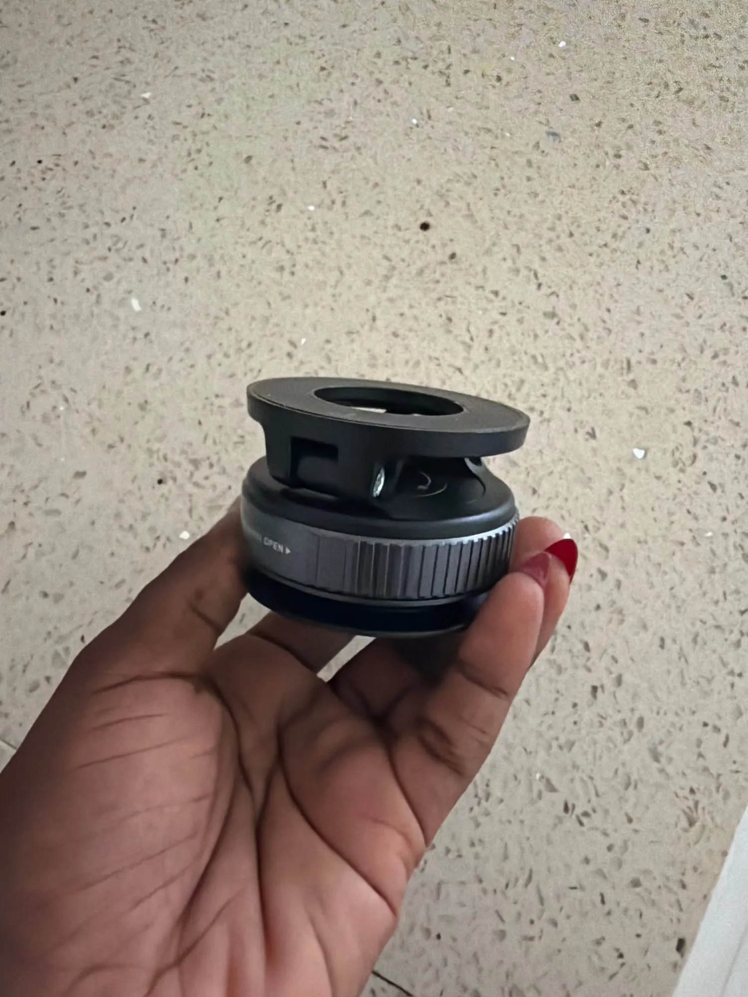 Da Smartphones nicht von selbst magnetisch sind, wird ein selbstklebender Metall-Magnetring verwendet.